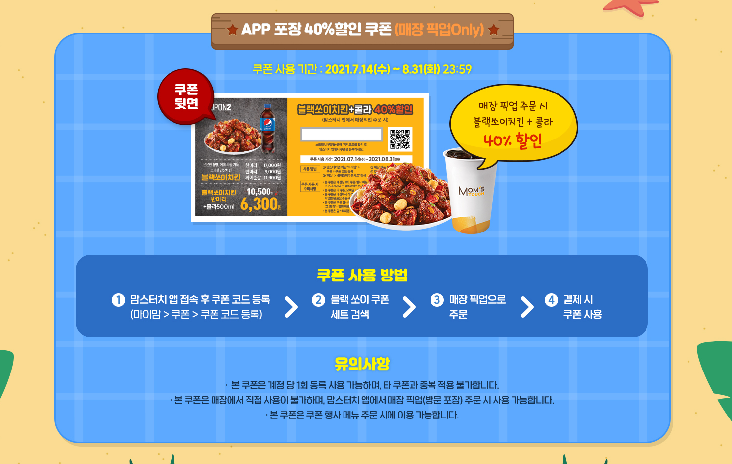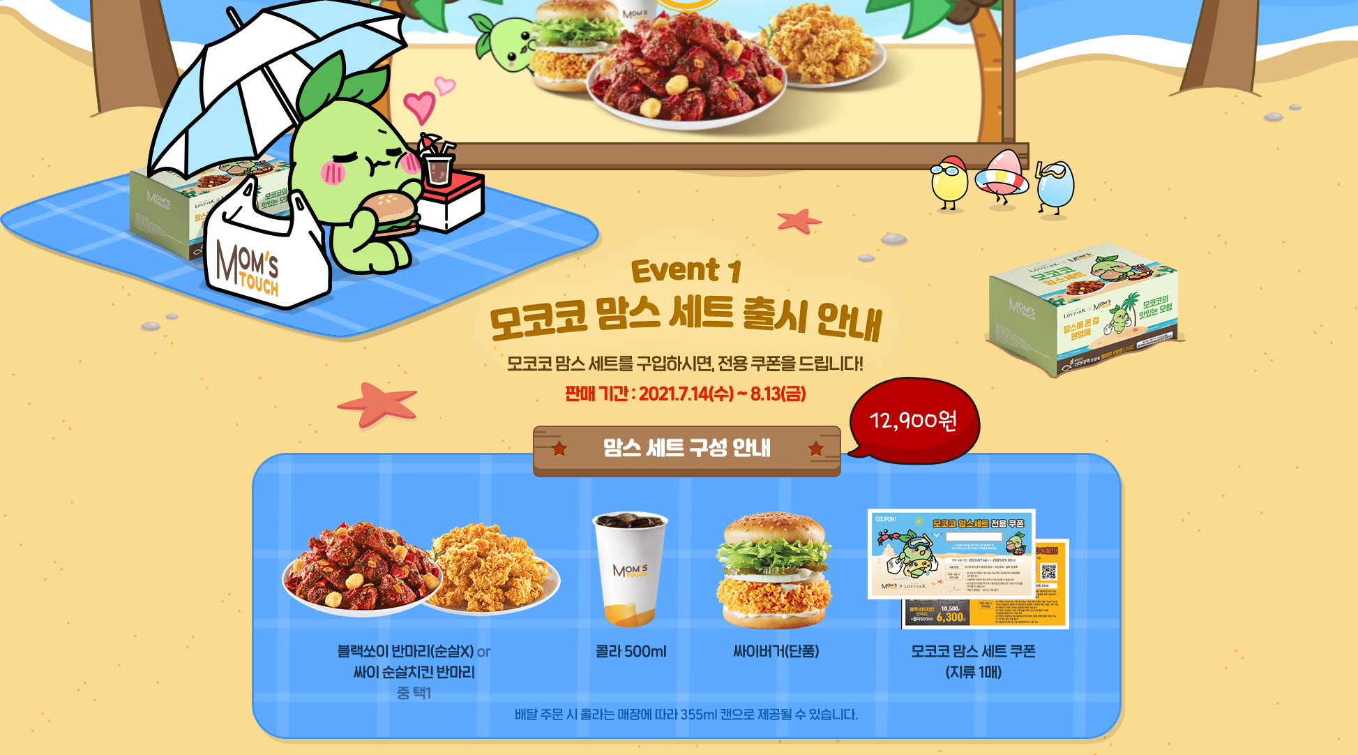 8월 13일까지 모코코맘스세트 를 구매한 모든 고객에게 블랙쏘이치킨