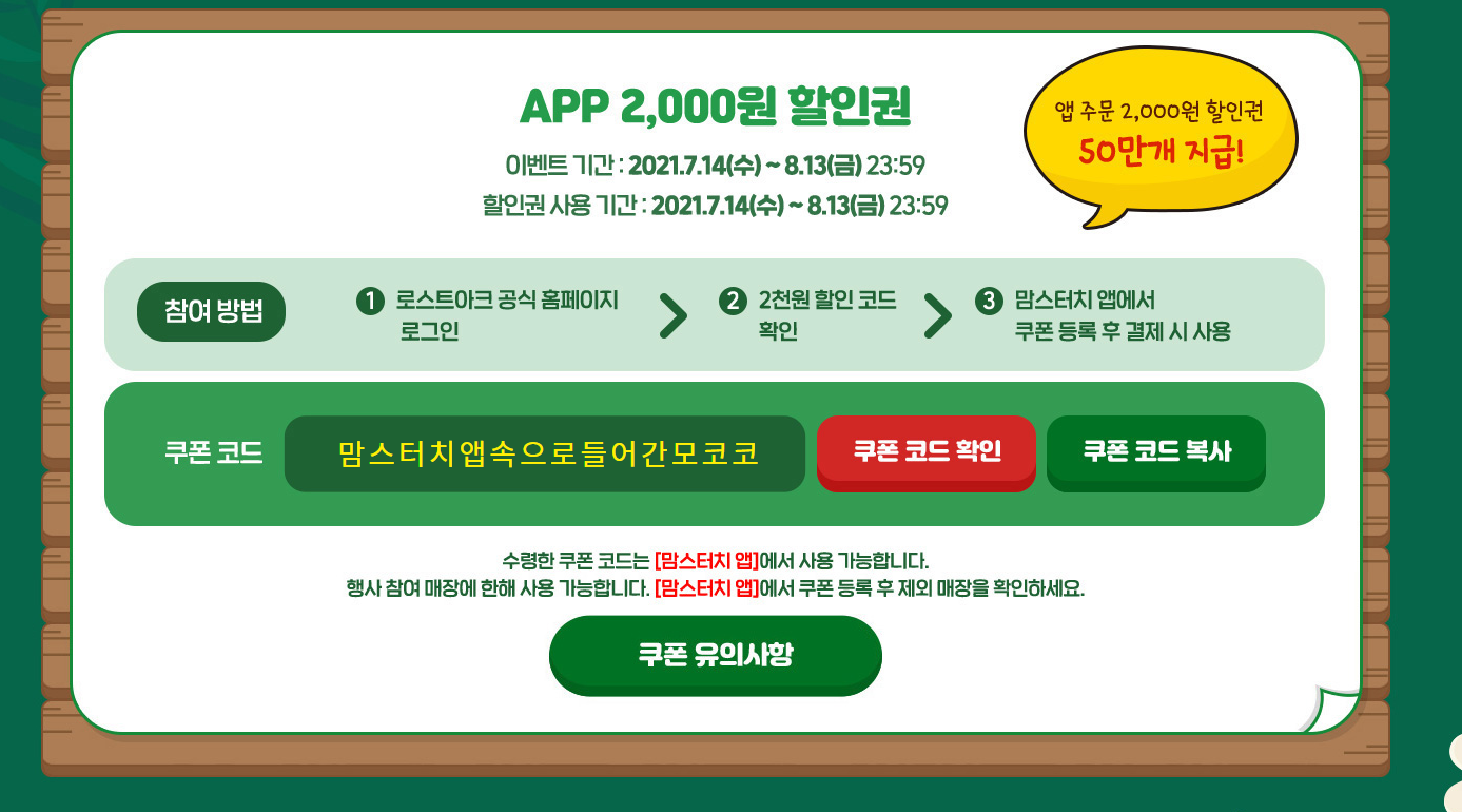 및 콜라 500ml 1병 40% 할인, 로스트아크 스페셜 게임 아잍메 교환 쿠폰 지급이됩니다.