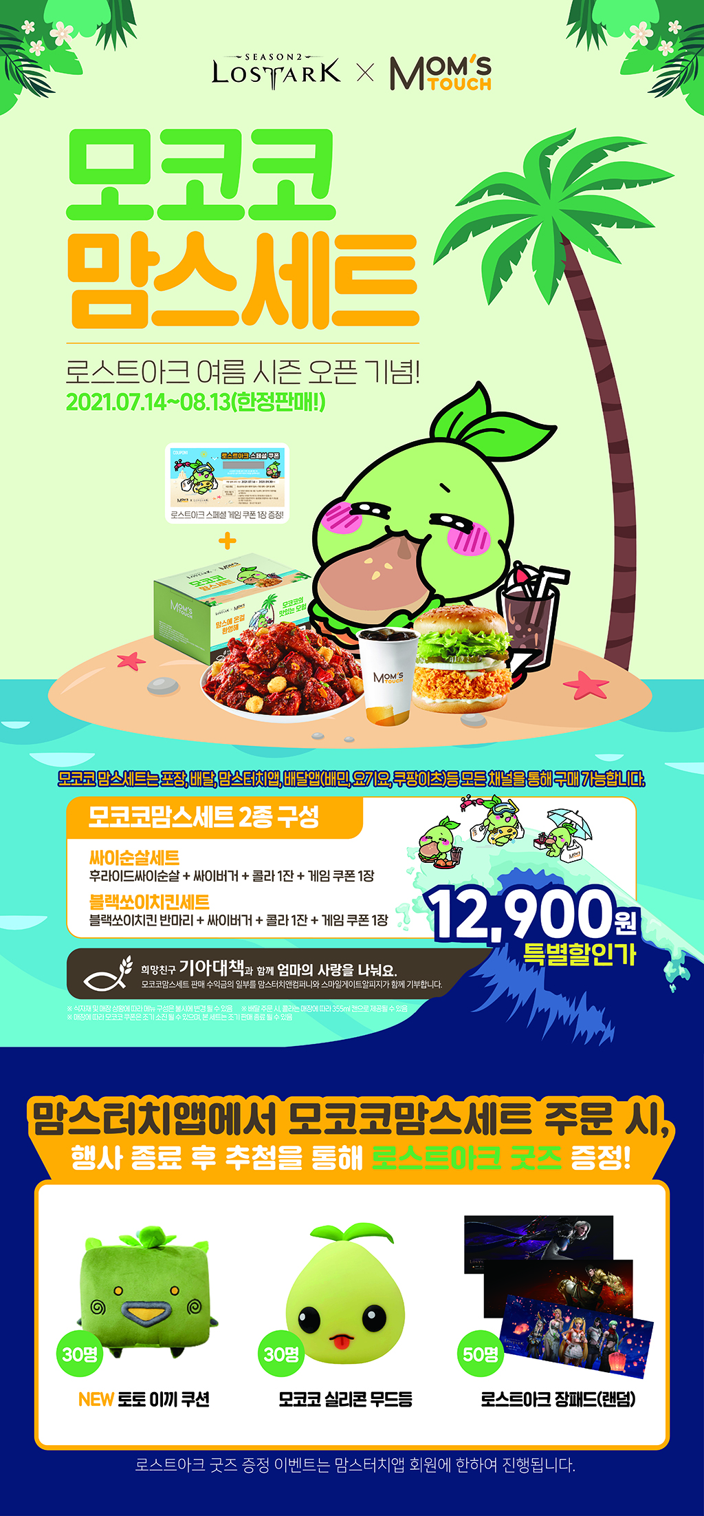 | 이벤트 내용 | 인기 MMORPG 게임 로스트아크와 맘스터치 여름 시즌 특별 한정 메뉴 '모코코맘스세트' 출시 |